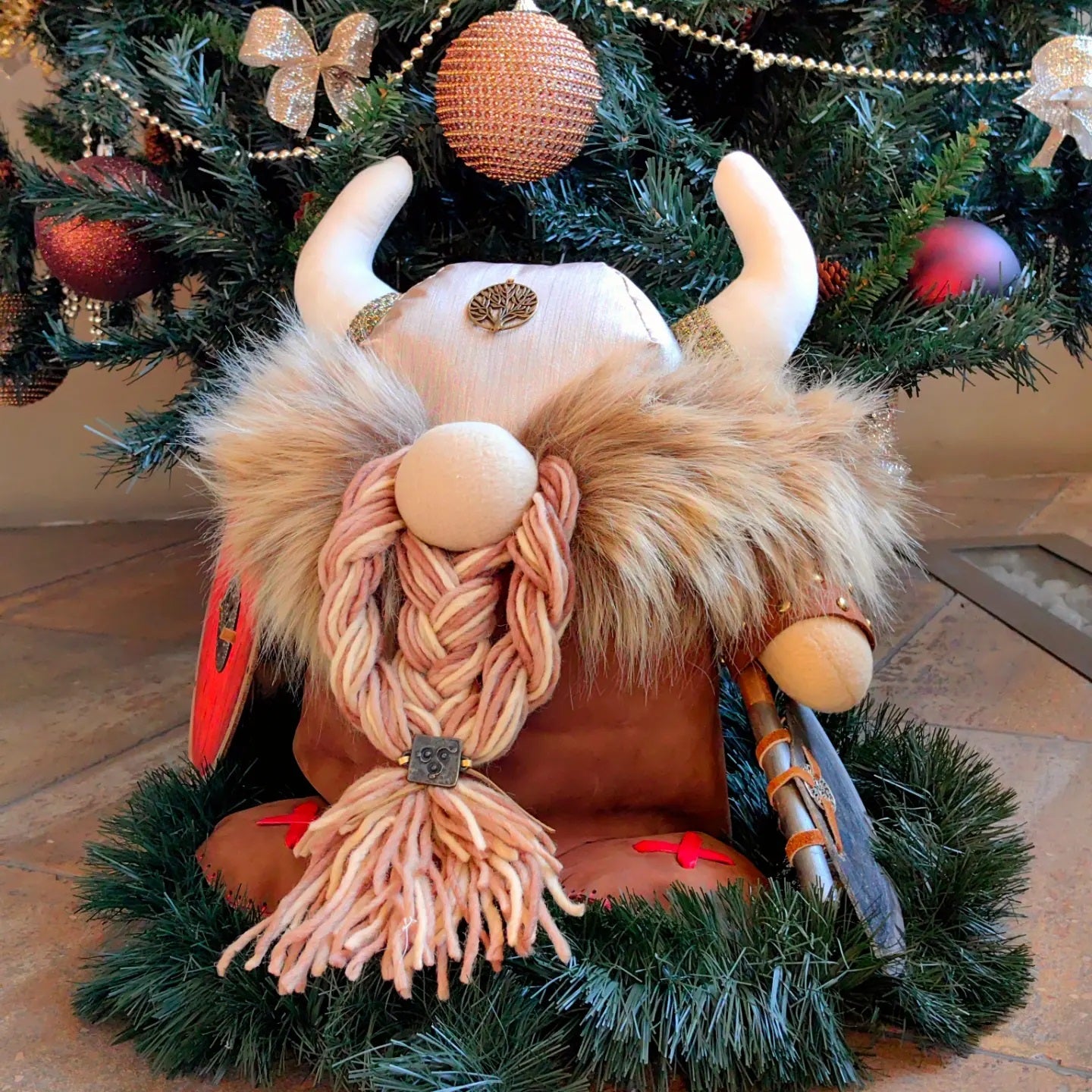 Handmade viking dolls with serial numbers on small polymer clay hearts, stitched...
